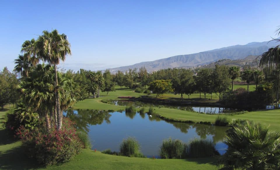 Golf del Sur is the only 27-hole championship course in Tenerife, and features three unique individual courses – the A “Links” course, B “North” course and C “South” course. Designed by Pepe Gancedo, although the course looks flat, you should be careful of the wind, strategic lakes, bunkers and tricky borrows on the greens. The course is beautiful, boasting black volcanic sand in bunkers and lush palm trees and giant cacti. The par 5 3rd hole is particularly memorable as it is especially challenging.
