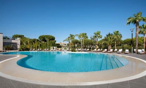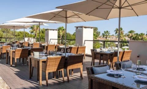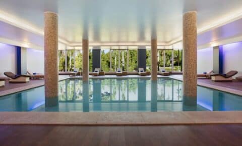 The hotel facilities are superb with two restaurants, two bars, an outdoor heated swimming pool, an indoor heated swimming pool, a luxurious spa with Jacuzzi, two tennis courts and a Beach Club. The resort is also perfect for families, with a dedicated Kid’s Club, playground, games room and children’s pool.