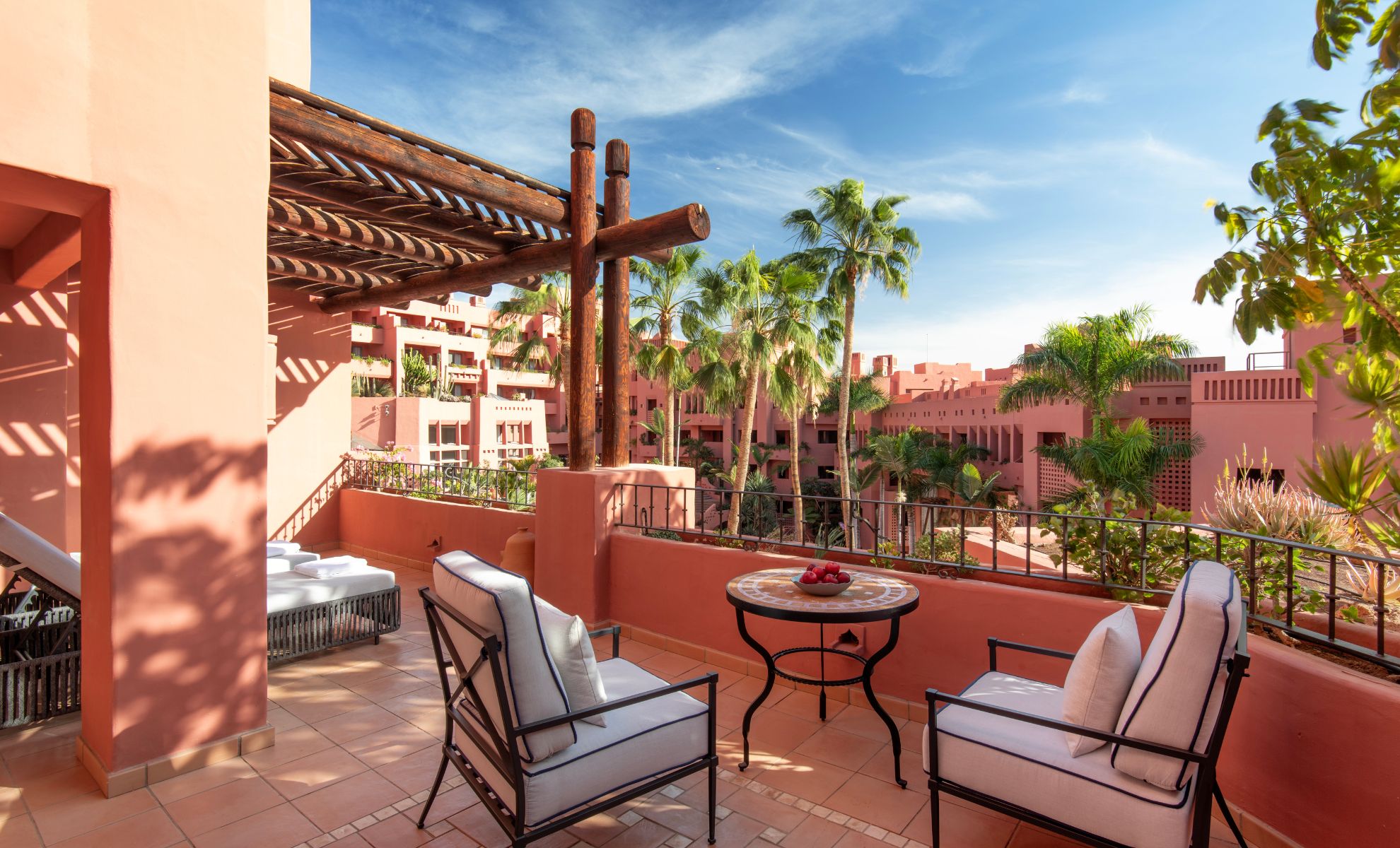 These 50-square-metre rooms offer views over the ocean or the resort and have a bedroom with a king-size or twin beds, full marble bathroom with separate bathtub and shower, and a fully-furnished terrace. Amenities include: complimentary WiFi, air-conditioning, minibar, Nespresso machine, TV, bathrobes and slippers, Asprey bath amenities and nightly turndown service.